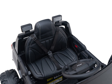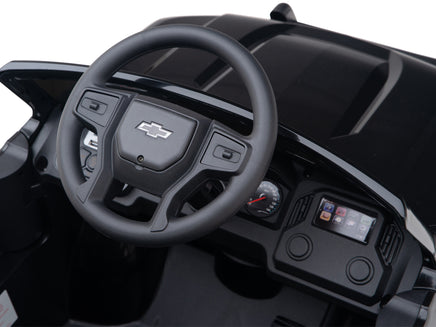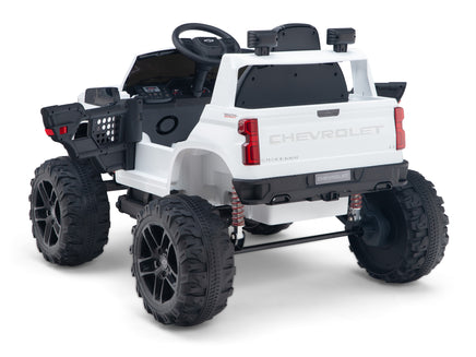 The Chevy Silverado lifted remote control ride on truck will be an amazing addition to your garage. Imagine the smile on your toddler's face when they have their own truck right next to yours. Our fully licensed Chevrolet is an amazing truck with the powerful 24 volt motors and leather seat for one toddler. Order yours today and receive our 6 Month manufacturer's parts replacement warranty*.