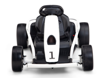 The ultra good time comes when you purchase our racing Car Tots 24 volt Drift Go Kart. It is available in 5 amazing colors to choose from. All of the features and specifications are listed below. There is a horn and drift switch for once you are ready to activate that feature. We recommend a car cover and Swagger brand Bluetooth speaker as the accessories for this vehicle. Do not drag anything behind the Go-Kart and like all ride on toys do not drive through water. We are even including our exclusive 6 Month manufacturer's parts replacement warranty*.